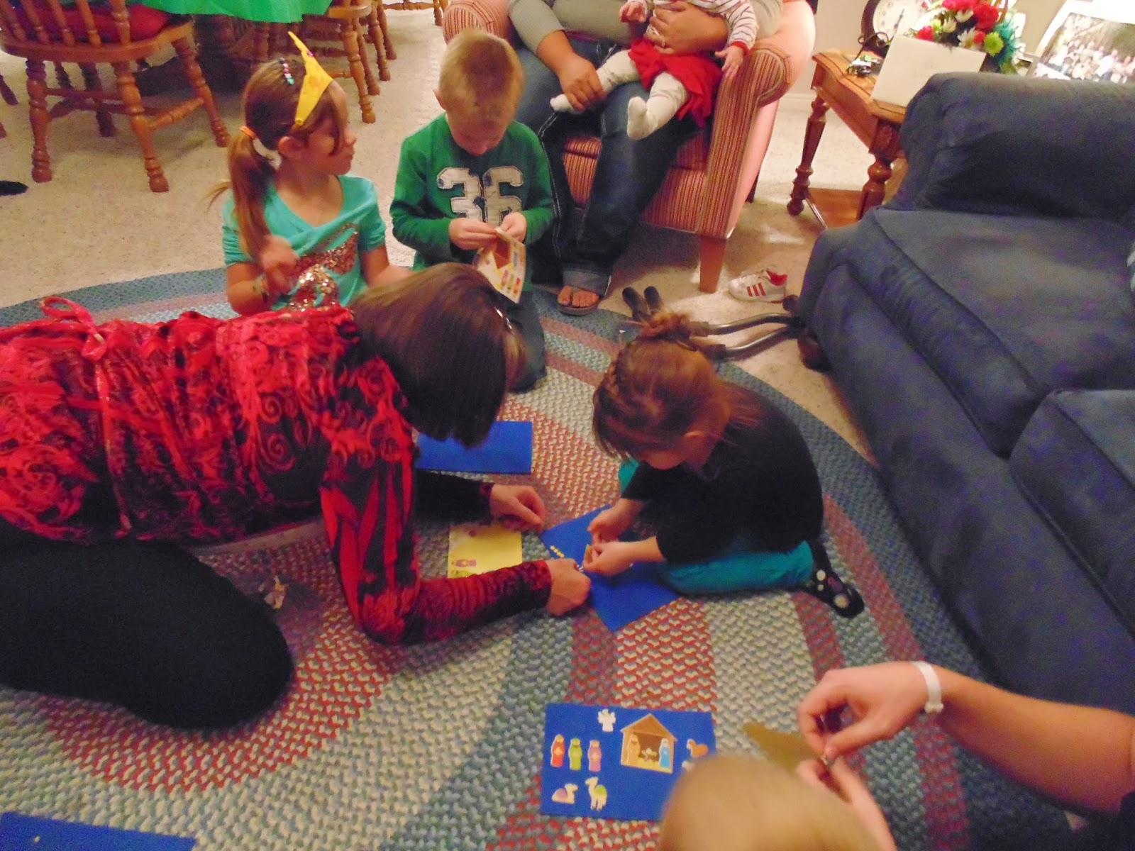 Here the kids are making a sticker Nativity scene.